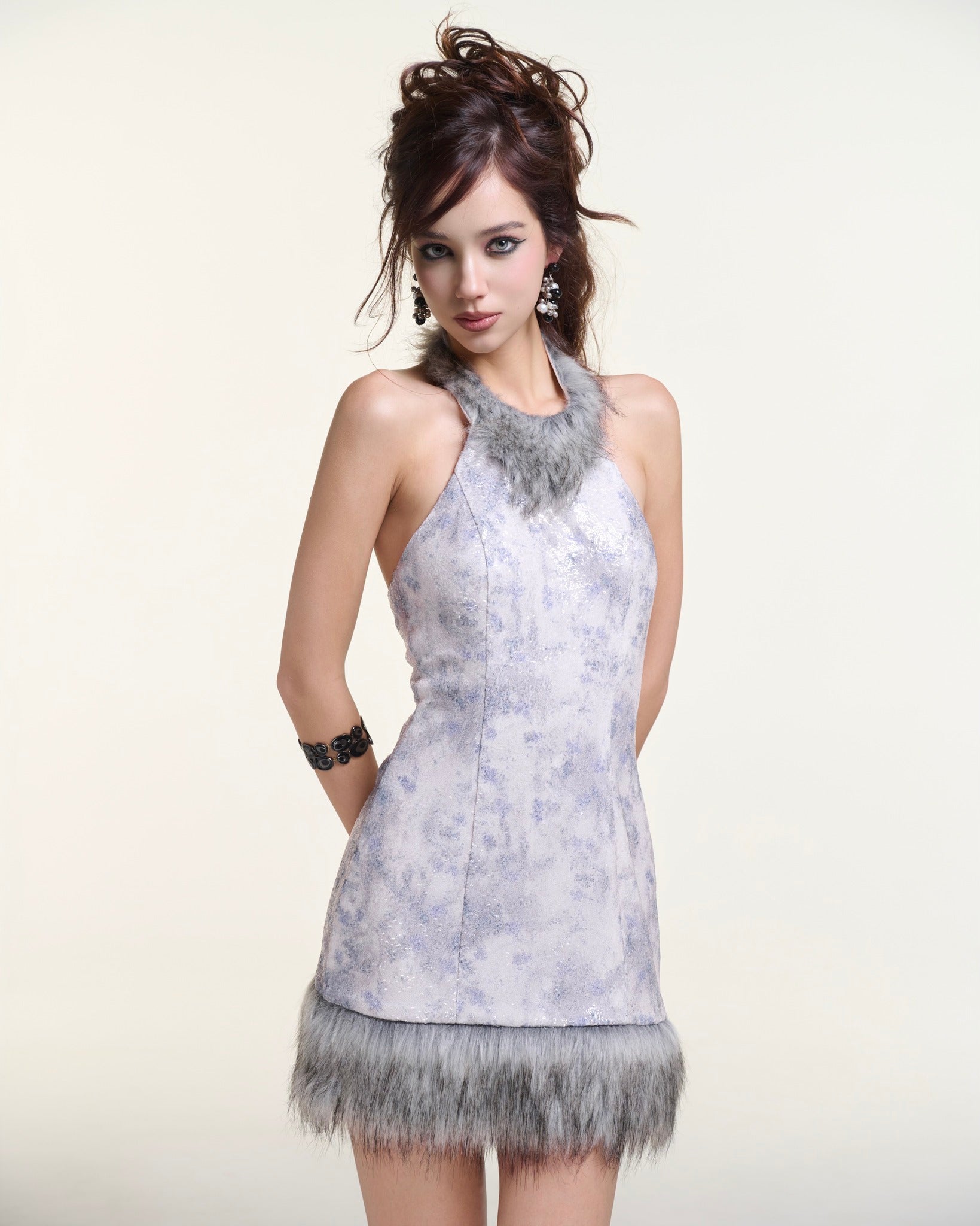 Marble Dress – Faux Fur Trim Mini Dress by INTO.EIGHT